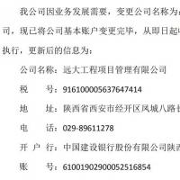 我公司因業(yè)務發(fā)展需要,變更公司名稱為:遠大工程項目管理有限公司,現(xiàn)已將公司基本賬戶變更完畢,從即日起收款及開票信息按最新內(nèi)...